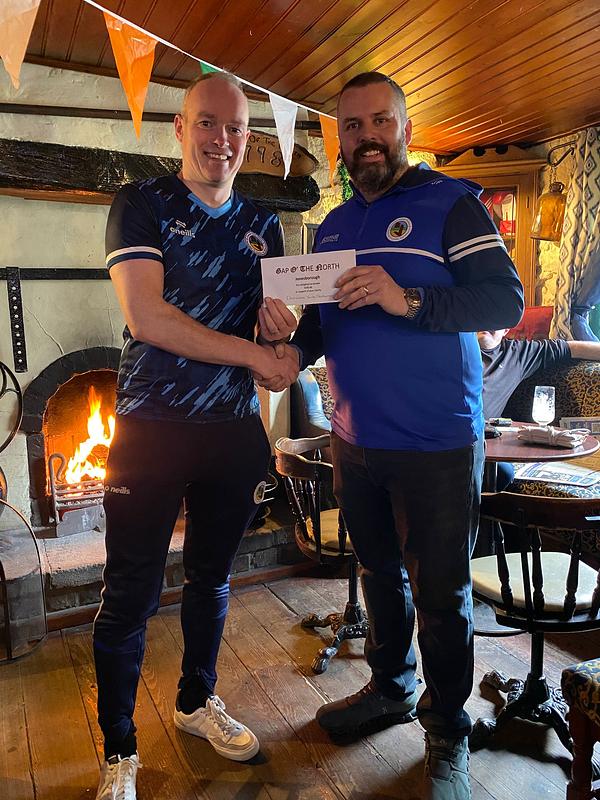 Many thanks to John Fearon, Proprietor, Gap O' The North Pub in Jonesborough, who recently presented Philly McEvoy, Dromintee GAC Juvenile Chairman, with the kind donation of €500 towards Dromintee GAC Juvenile Development as a result  of the club being drawn out as this weeks chosen charity from Sunday's 'Joker at the Gap' draw.