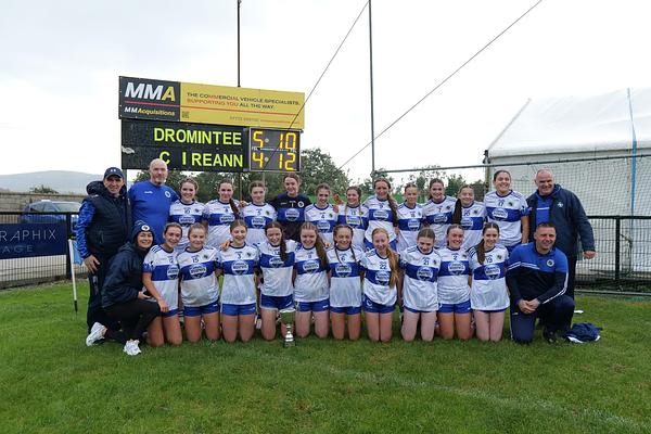 In front of a beaming home crowd county chairperson Sinead Reel presented the championship silverware to captain Lily McBennett who was quick to note the contribution of multiple coaches and parents across the senior, minor and 16 groups who had all played their part in the latest victory for the group.